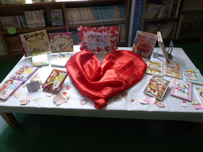 バレンタインデーが近づき、図書室には、司書さんの手で